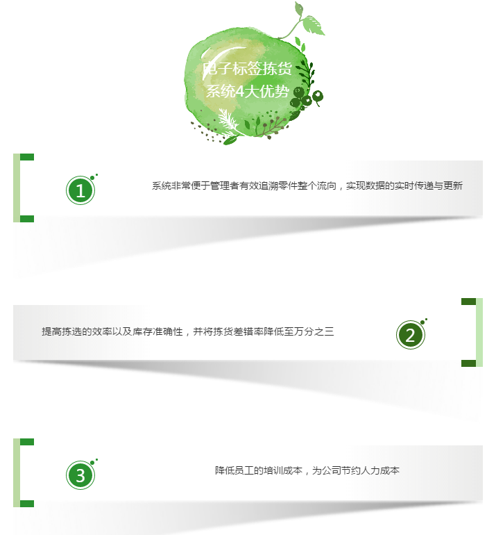 該公司于2015年下半年上線電子標(biāo)簽揀貨系統(tǒng),此系統(tǒng)共設(shè)936個電子標(biāo)簽,采用摘果式作業(yè)方式,針對每一份訂單進(jìn)行精確無誤的揀貨,同時(shí)又提高了作業(yè)效率。